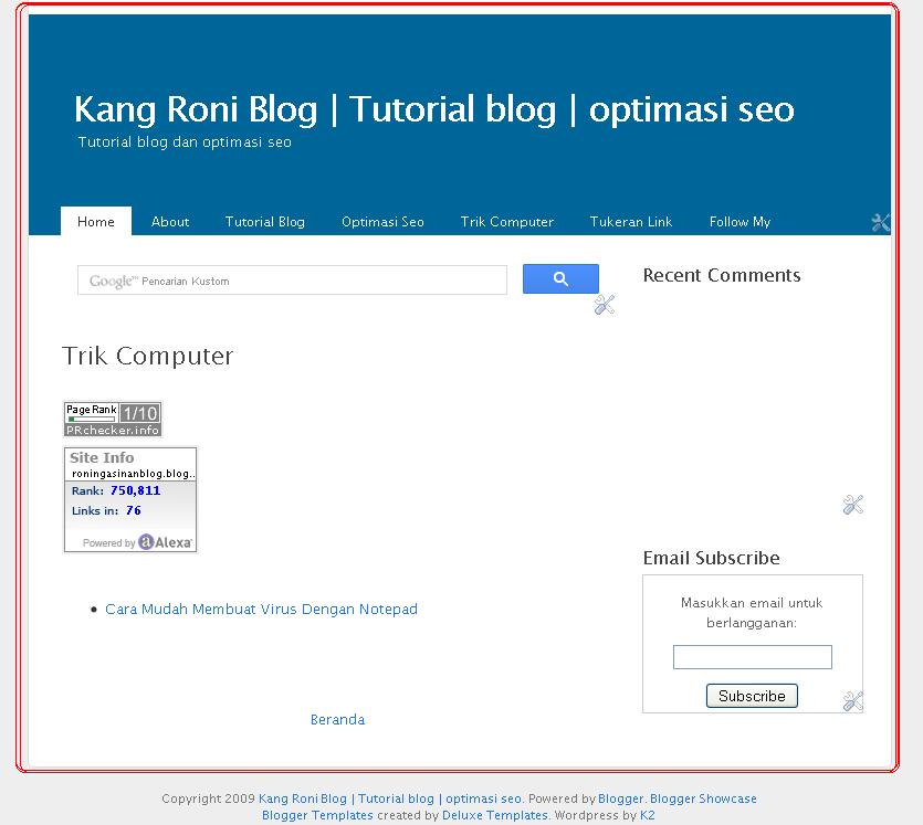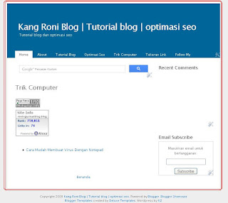 <p>Kang roni blog Tutorial blog optimasi seo blogspot. Kunjungi dan dapatkan tutorial lengkap.</p>
